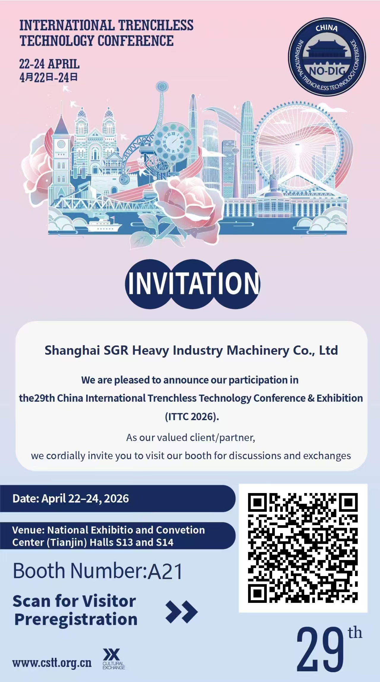 SGR は、第 29 回中国国際トレンチレス技術セミナーおよび展示会 (ITTC2026) に出展します。 日付: 2026 年 4 月 22 ~ 24 日 場所: 国立展覧会議センター (天津)、ホール S13 および S14 小間番号:A21 トレンチレス業界の毎年恒例のプレミアイベントは、専門家の参加者やバイヤーから高く評価されています 中...